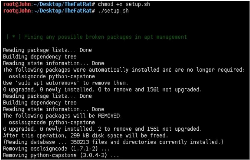 root@John:~/Desktop# git clone https://github.com/Screetsec/TheFatRat.git