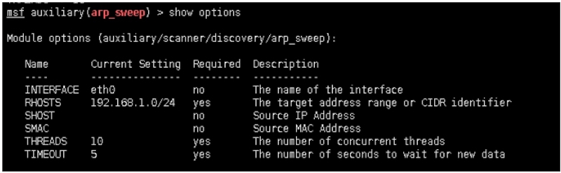 Module options (auxiliary/scanner/discovery/arp_sweep):