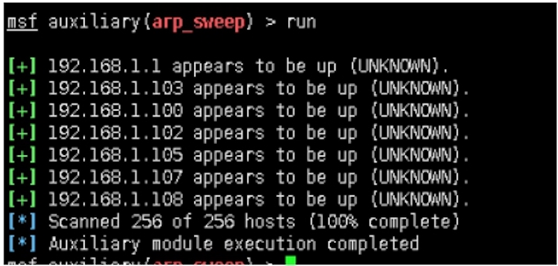 msf auxiliary(arp_sweep) > set RHOSTS 192.168.1.0/24