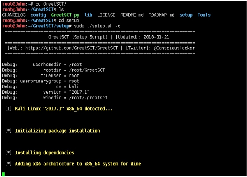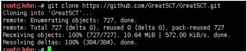 root@John:~# git clone https://github.com/GreatSCT/GreatSCT.git