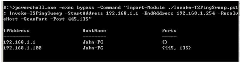 powershell.exe ‐exec bypass ‐Command "Import‐Module ./Invoke‐TSPingSweep.ps1