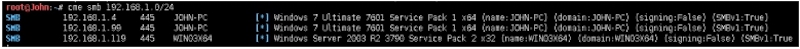 x64 (name:JOHN‐PC) (domain:JOHN‐PC) (signing:False) (SMBv1:True)