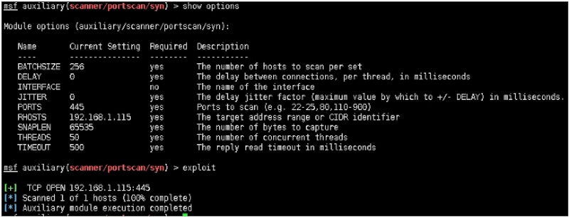RHOSTS 192.168.1.115 yes The target address range or CIDR identifier