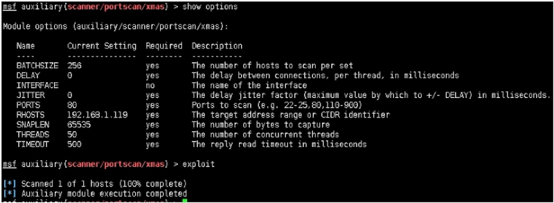 msf auxiliary(scanner/portscan/xmas) > exploit