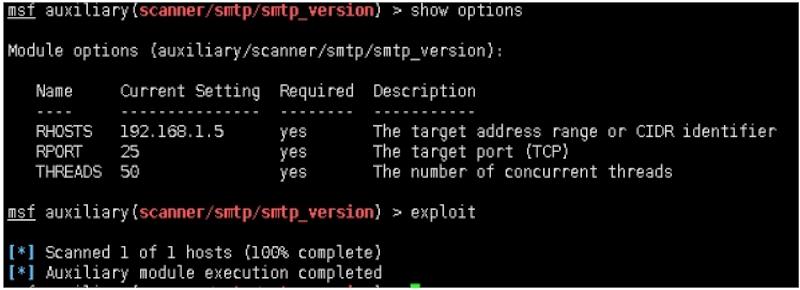 msf auxiliary(scanner/smtp/smtp_version) > exploit