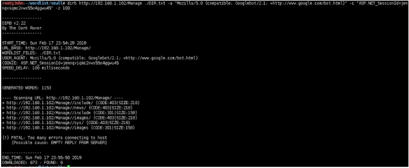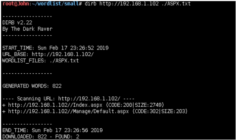 root@John:~/wordlist/small# dirb http://192.168.1.102 ./ASPX.txt