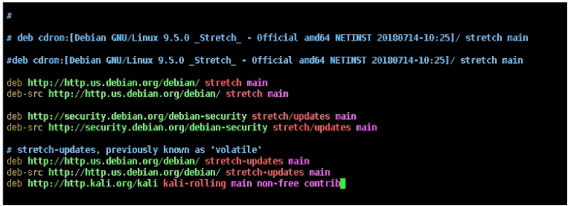 deb http://http.kali.org/kali kali-rolling main non-free contrib