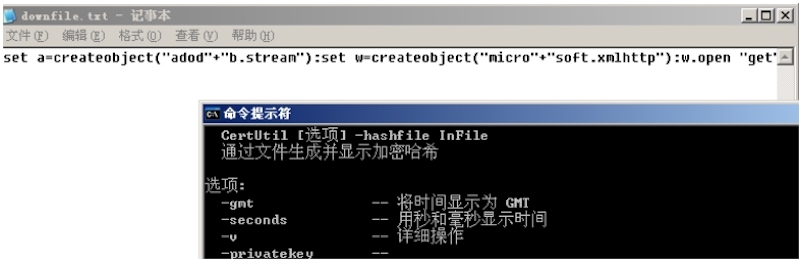 C:\>certutil -encode c:\downfile.vbs downfile.bat