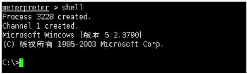 在 meterpreter shell 命令切到交互式 cmd 命令。