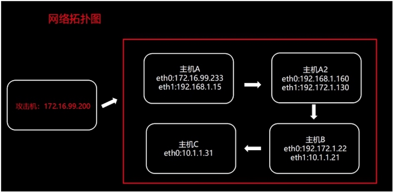 A1,A2,B,C为标准ABC类网,允许访问流程,A1---->A2---->B---->C,不允许跨主机访问。 (请注意每个主机的对应IP段)