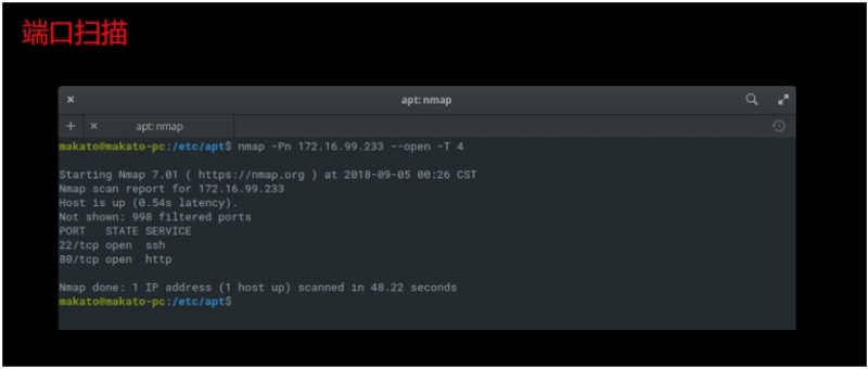 扫描主机A1对攻击机开放端口:80,22