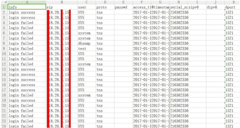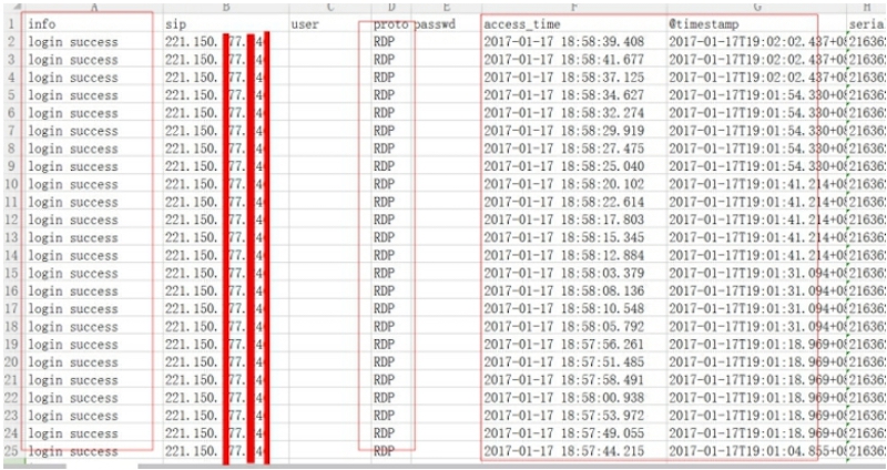 - 某厂商日志:该IP 为韩国,login 状态全部为success