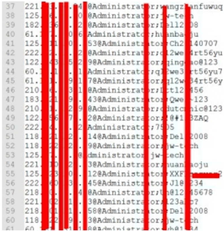 再该服务器上留有大量以地名名为的 txt 文本(如 beijing.txt)。文本内容为 IP,部分内容为账号,密码,ip。其中dongbei.txt(被攻击者归属地为东北)找到某政府对应IP。