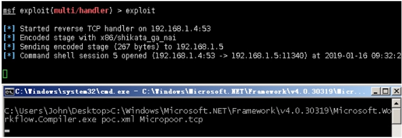 C:\Windows\Microsoft.NET\Framework64\v4.0.30319\Microsoft.Workflow.Compiler.exe poc.xml Micropoor_rev1.cs