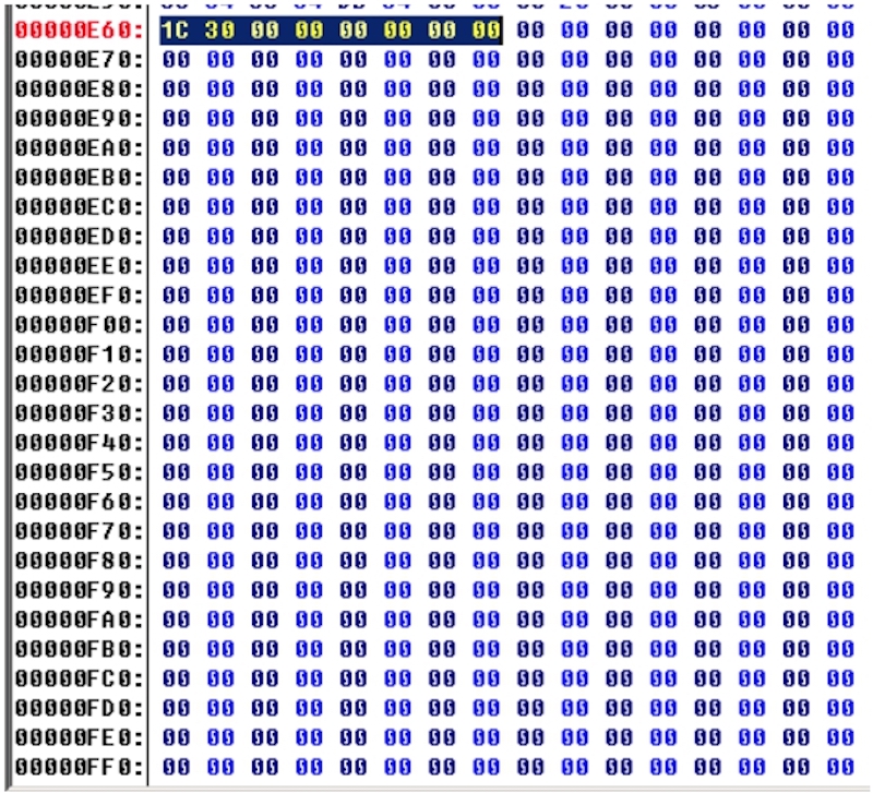 在00000E60起含有大部分000h,充填掉00,在次生成payload。