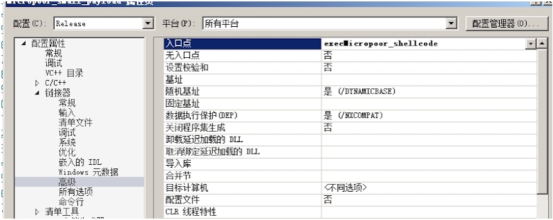 自定义入口点:execMicropoor_shellcode